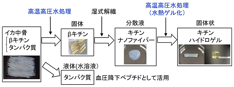 M. Osada, M. Nishiwaki, T. Watanabe, Environment-friendly utilization of squid pen with water: Production of β-chitin nanofibers and peptides for lowering blood pressure, Int. J. Biol. Macromol. 189 (2021) 921–929. http://dx.doi.org/10.1016/j.ijbiomac.2021.08.190.