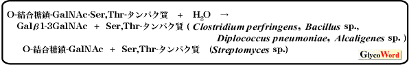Endo- -GalNAc-aseは、糖タンパク質のセリン(スレオニン)残基に結合するO-結合型糖鎖とタンパク質との結合部位に作用して糖鎖を遊離するエンド型グリコシダ−ゼである。この酵素は、Clostridium perfringens, Diplococcus pneumoniae, Alcaligenes sp.,Bacillus sp. そしてStreptomyces sp. の培養液から見つけられたが、これらの酵素の基質特異性やアグリコン特異性は異なることが知られている。これらのendo- -GalNAc-aseは、